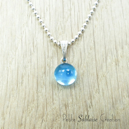 Collier Artisanal long, Perle Bleue ornée d'une feuille d'Or