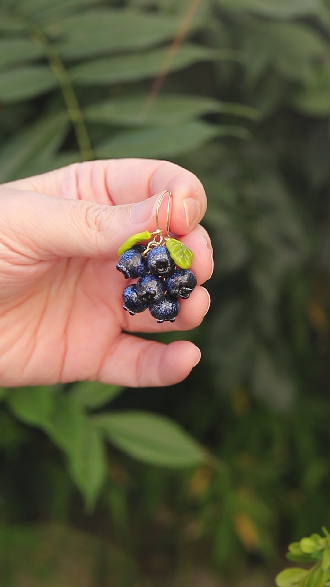 Boucles d'oreilles Artisanales Myrtilles en Argent massif et plaqué Or 🫐✨