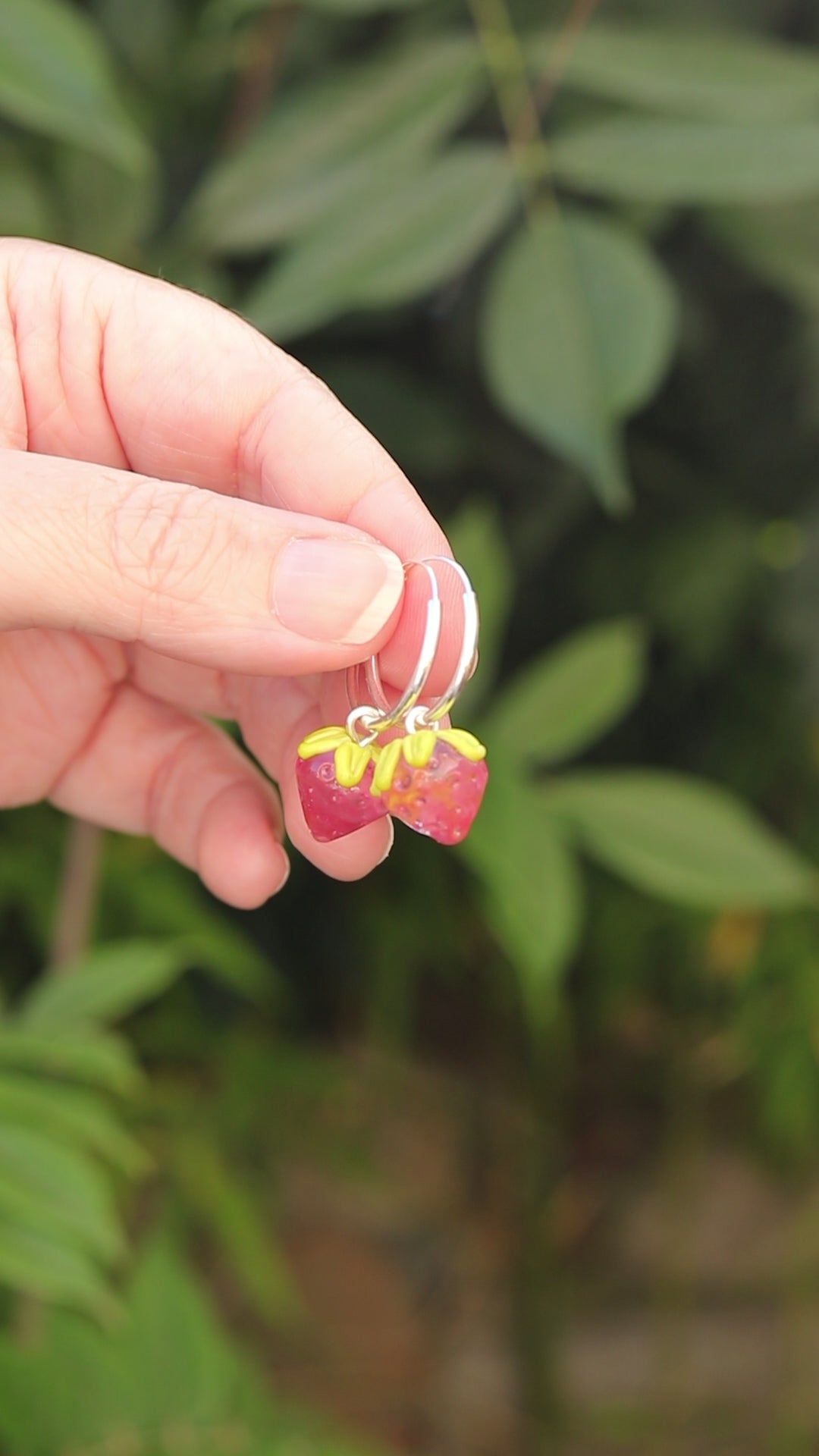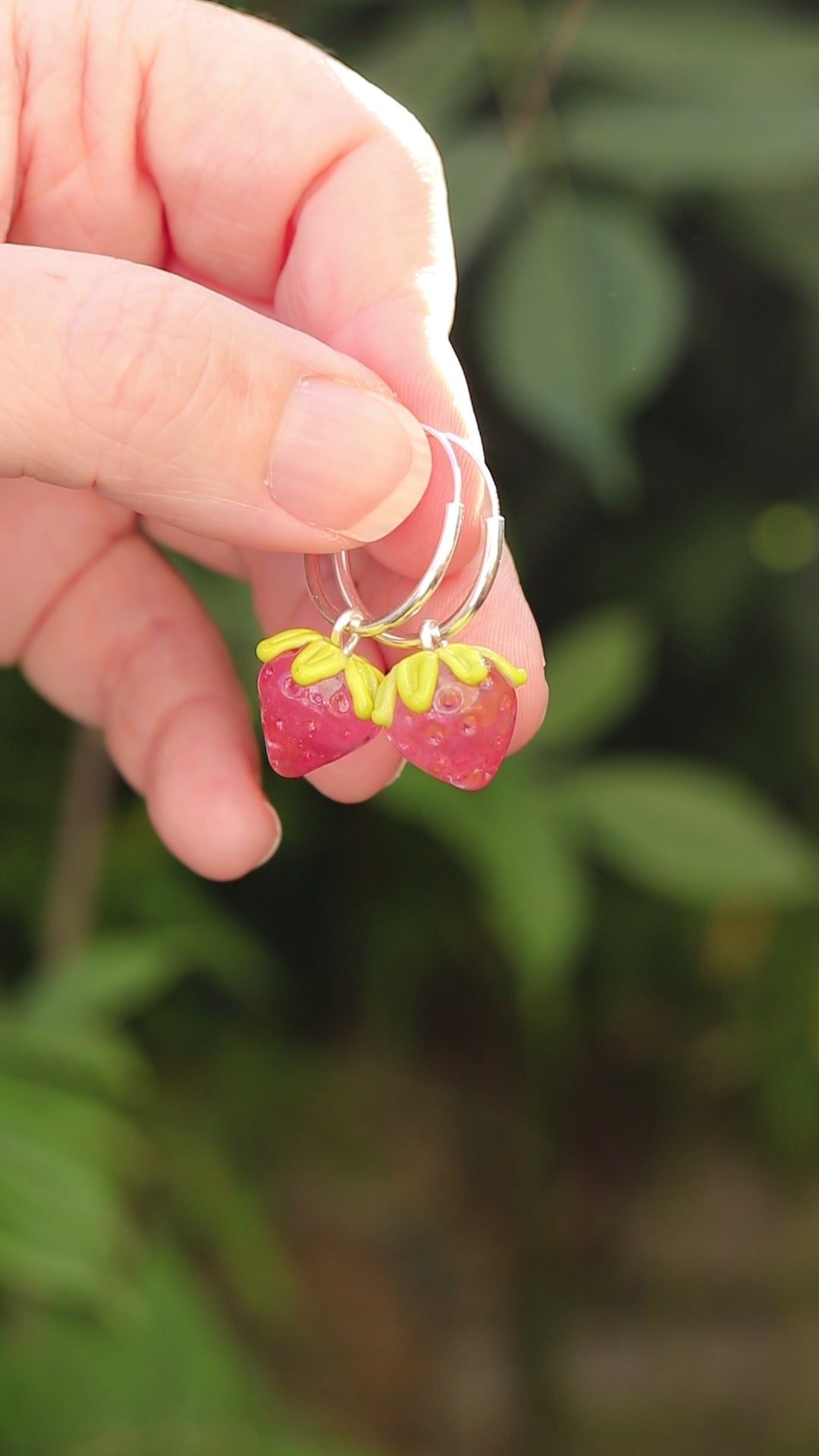 Envie d'apporter une touche de fraîcheur et d'originalité à votre tenue ? Découvrez ces magnifiques boucles d'oreilles créoles Fraise rose en argent massif, délicatement sculptées à la flamme dans mon atelier 🔥.